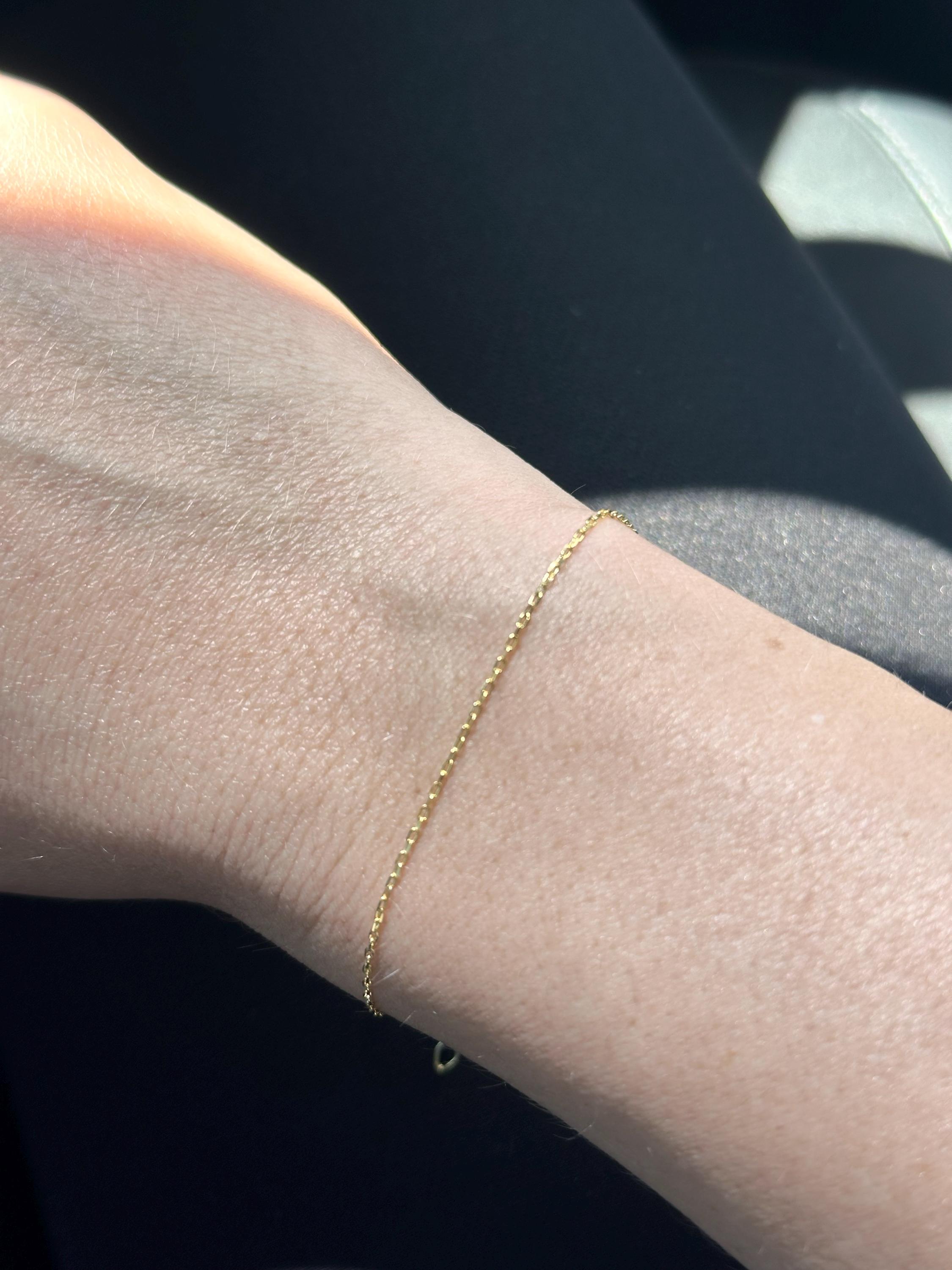 Amazing piece! Just as described. Other commenters are right- my phone camera does not do this bracelet justice. It is so sparkly in the light. Adds a simple, beautiful element to my bracelet stack.