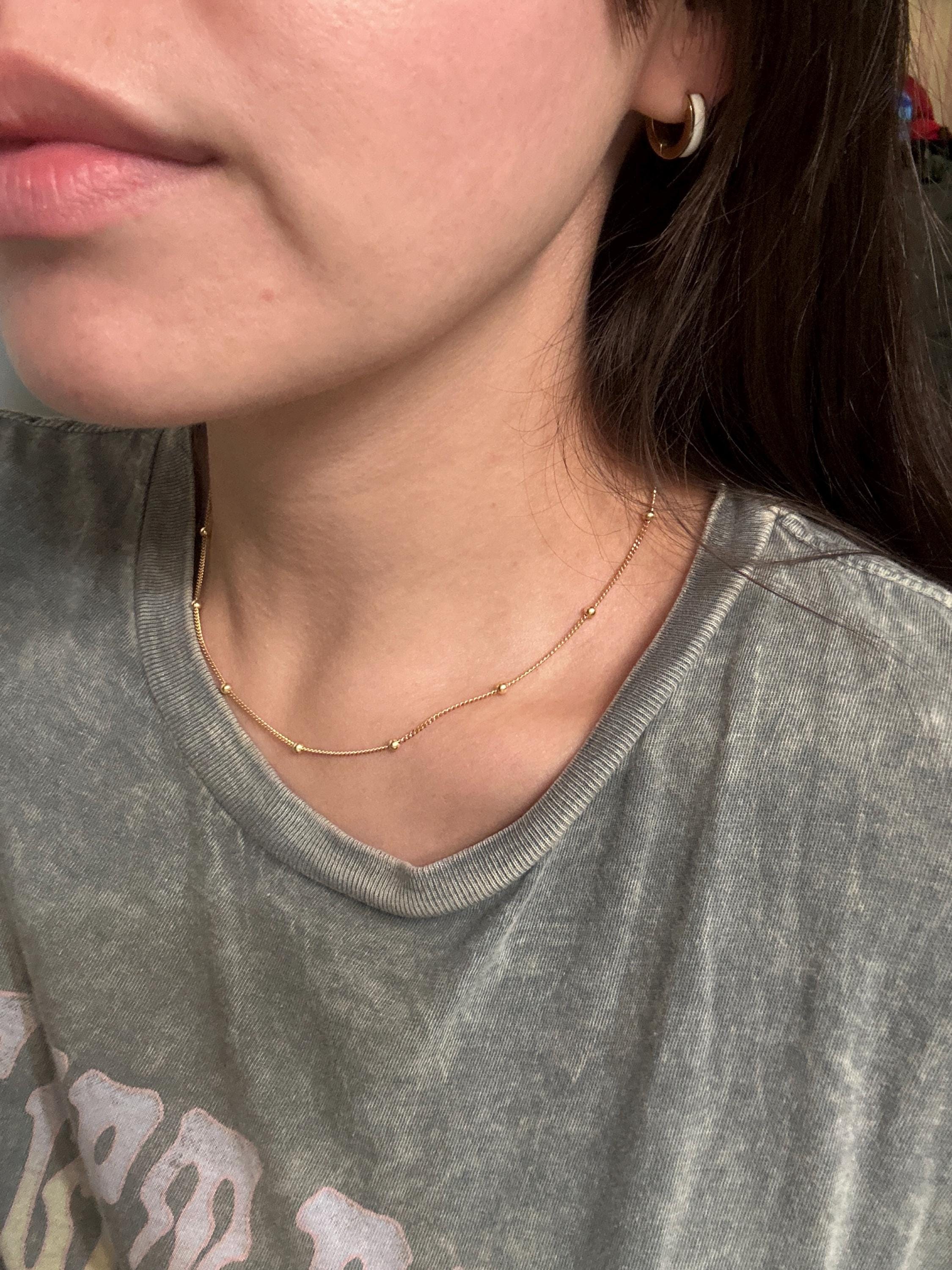 Satellite Chain Necklace, 14K Gold Vermeil Dainty Bead Necklace for Women, Minimalist Everyday Jewelry Gift for Her, Birthday Gift for Mom